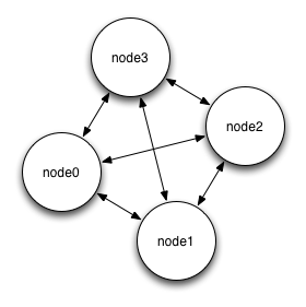 이게 바로 Nanomsg를 선택한 동기라고 볼 수 있다. 이를 이용하면 브로커 없이 노드간에 직접 메세지큐를 놓을 수 있다. 사실 이런류의 메시지큐 중에는 ZeroMQ가 유명하다. 둘의 차이는 대동소이하지만 Nanomsg가 최근에 나오기도 했고 더 POSIX 호환을 지킨다고 해서 이걸 선택해봤다.